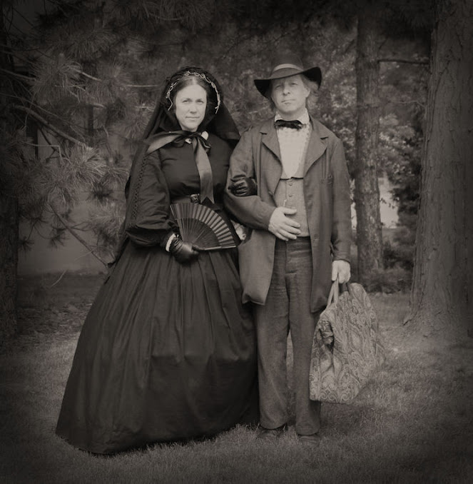 | Kim and I during her tenure presenting mourning at Greenfield Village's Adams House during the Civil War Remembrance reenactment a number of years ago. Besides her historic cooking prowess, she is a mourning historian and actually began the mourning program at the Village many years ago. In fact, I originally met Kim when she worked at Greenfield Village back in the 1990s, and we've been friends pretty much ever since.. |