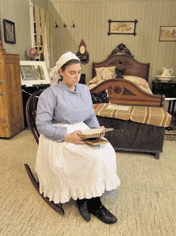 Me: "You mean, the one who dresses up in a hoop skirt and brings her spinning wheel to the reenactments? She thinks it's fine,"